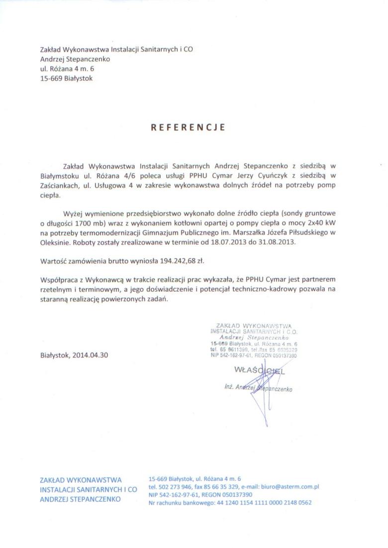 Wykonanie dolnego źródła oraz kotłowni opartej o pompy ciepła w Gimnazjum Publicznym w Oleksinie